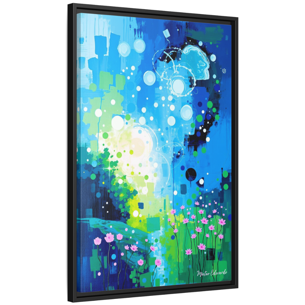 Immerse yourself in tranquil serenity with this stunning framed canvas where light moves through rising waves of ocean blues and fresh greens creating peaceful dreamscape. Gentle geometric shapes and floating bubbles create meditation atmosphere. Soft color transitions from deep blues to vibrant greens feel like nature awakening. Premium canvas printing captures subtle blends with elegant black frame adding sophisticated presentation. Perfect for peaceful souls seeking retreat spaces where beauty and serenity inspire daily mindfulness.